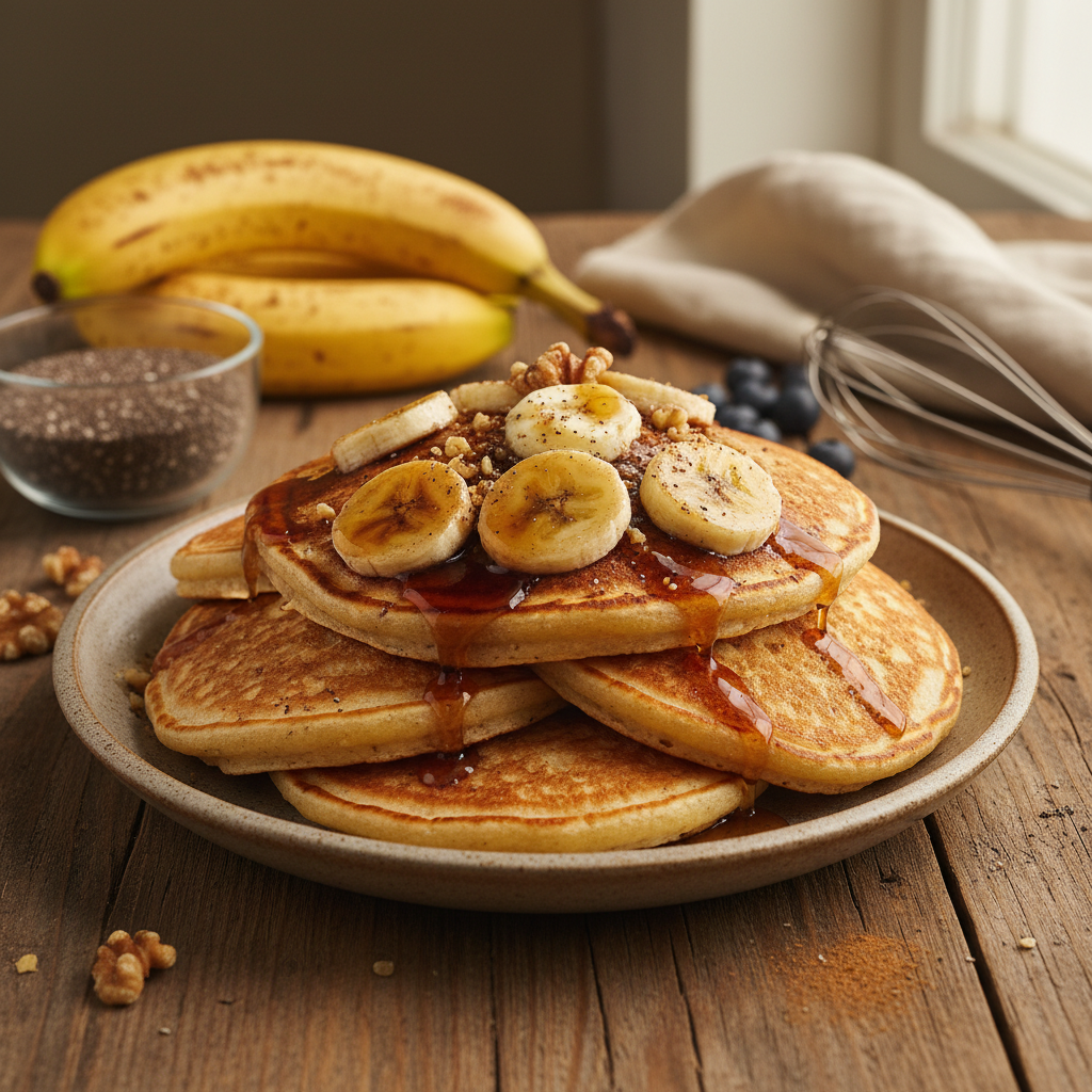 Bananų blynai nėra tik skanus desertas – tai gali būti ir vertingas energijos šaltinis. Bananuose gausu kalio, kuris svarbus širdies veiklai ir raumenų funkcijai, taip pat vitamino B6 ir skaidulų, kurios gerina virškinimą. Naudojant pilno grūdo miltus, patiekalas pasipildo sudėtiniais angliavandeniais, kurie suteikia ilgalaikį sotumo jausmą ir neleidžia staigiai pakilti cukraus kiekiui kraujyje.