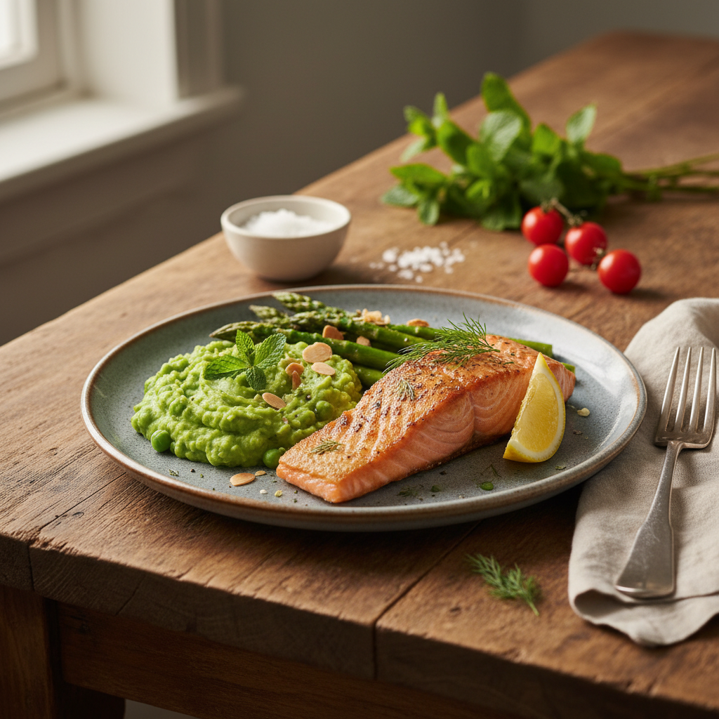 - Spalvų balansas: Lašiša yra rausva arba oranžinė, todėl lėkštėje vizualiai geriausiai atrodo žali (šparagai, brokoliai) arba tamsūs (laukiniai ryžiai) akcentai.