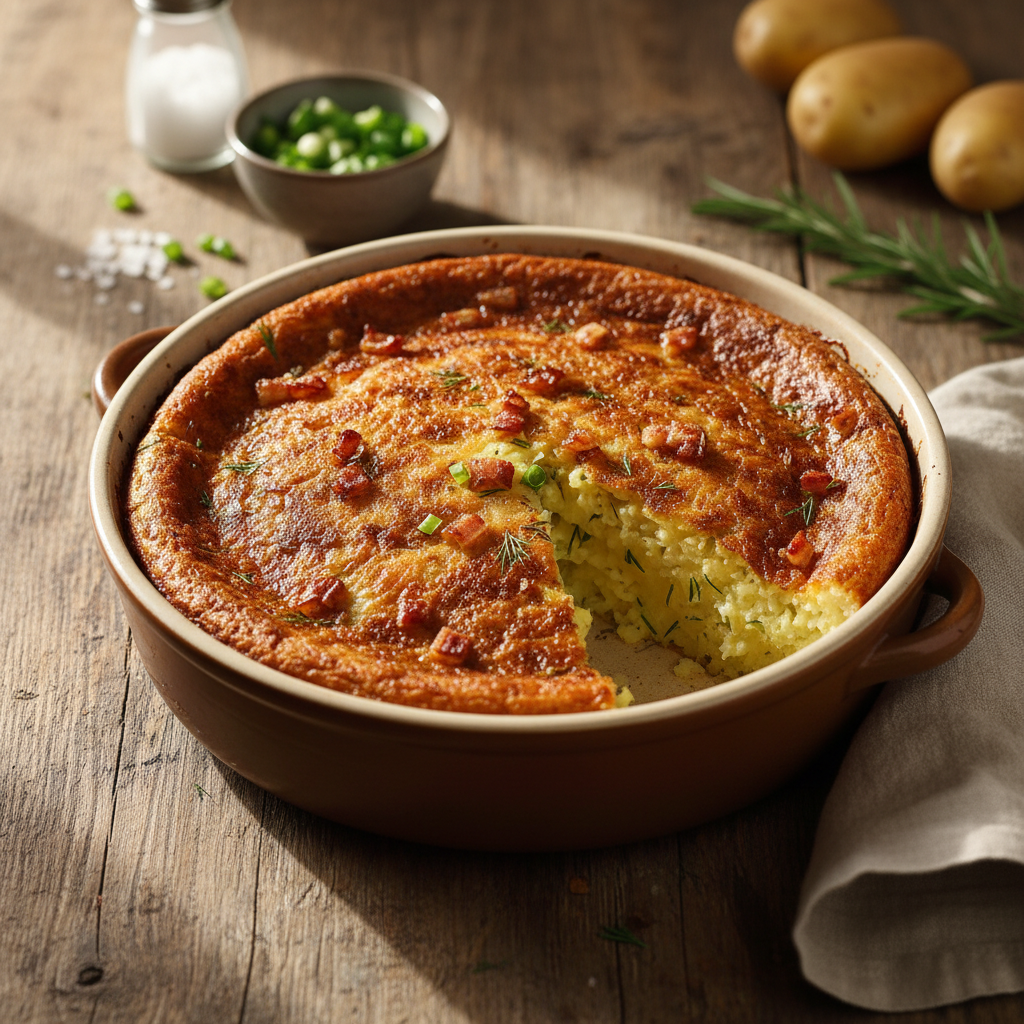 - Nuplikymas karštais riebalais: Kepinami svogūnai ir spirgučiai su išsilydžiusiais lašinukais ar kokybišku aliejumi taip pat meistriškai atlieka šią funkciją. Būtina pilti dar čirškančius riebalus tiesiai į tešlą. Riebalai ne tik nupliko, bet ir sutepa bulvių daleles, todėl iškepęs patiekalas būna ypatingai purus, elastingas ir ne per daug suslūgęs.
