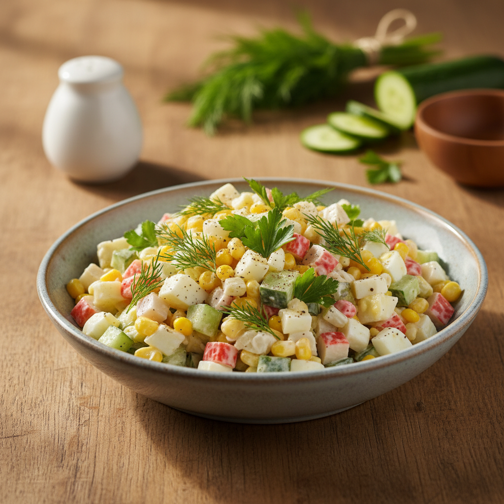 Kai artėja didžiosios metų šventės, šeimos susibūrimai ar netikėtai užklupę draugų vizitai, laikas virtuvėje tampa neįkainojamu ištekliu. Kiekvienas šeimininkas ir šeimininkė ieško tų stebuklingų kulinarinių sprendimų, kurie nereikalauja valandų valandas trunkančio pasiruošimo, tačiau garantuoja tobulą skonį ir estetinį vaizdą ant stalo. Viena iš tokių laiko patikrintų, tačiau niekada neatsibostančių idėjų yra gaivi, spalvinga ir nepaprastai gardi mišrainė, kurioje dominuoja jūrų gėrybių skonio motyvai. Tai patiekalas, kurio populiarumas neblėsta jau kelis dešimtmečius, o kiekvienuose namuose jis ruošiamas su savita meile ir paslaptimis. Tinkamai subalansuoti skoniai ir skirtingos tekstūros gali sukurti tikrą kulinarinį šedevrą be jokio streso. Gaivūs ingredientai puikiai dera tarpusavyje, sužadindami apetitą ir idealiai papildydami kitus, dažnai sunkesnius ar riebesnius, tradicinius šventinius patiekalus. Svarbiausia, kad visam šiam pasiruošimo procesui prireiks vos kelių minučių jūsų aktyvaus dėmesio, nereikės sudėtingų virimo ar kepimo technikų, o rezultatas pradžiugins tiek suaugusius gurmanus, tiek ir pačius mažiausius šventės dalyvius, kurie dažnai būna patys išrankiausi maistui.