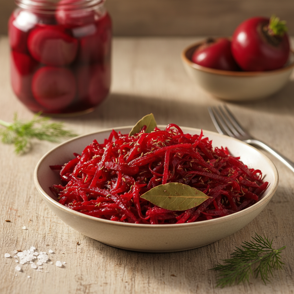 Šis receptas yra subalansuotas taip, kad burokėliai nebūtų nei per rūgštūs, nei per saldūs. Tai „aukso vidurys“, tinkantis tiek garnyrams, tiek sriuboms.