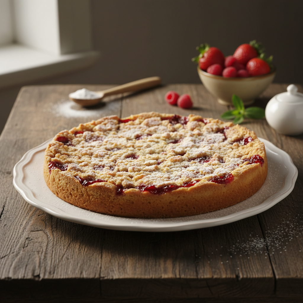 Tai desertas, kuris suburia šeimą ir draugus prie stalo, primena paprastą laimės receptą – šiek tiek šilumos, trupinėlis meilės ir gardus kąsnelis pyrago su uogiene.