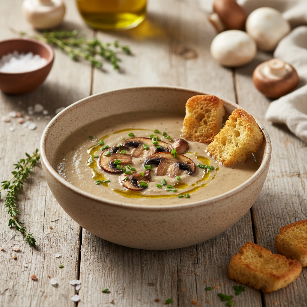- Patiekimas: Patiekite sriubą karštą, papuoštą keliais atidėtais keptais grybų griežinėliais, šlakeliu alyvuogių aliejaus bei orkaitėje ar keptuvėje paskrudinta traškia duona.