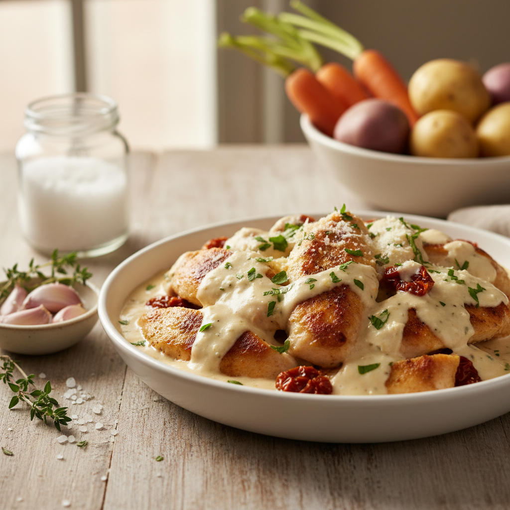 Šis receptas yra tikras išsigelbėjimas ieškantiems idėjų greitai vakarienei. Kreminis česnakų ir parmezano sūrio padažas padeda išlaikyti vištieną ypatingai sultingą ir suteikia jai sodrų, gilų skonį, kuris tiesiog ištirps burnoje. Tai patiekalas, kuris atrodo it iš brangaus restorano meniu, tačiau jo paruošimas užtruks vos dvidešimt minučių.