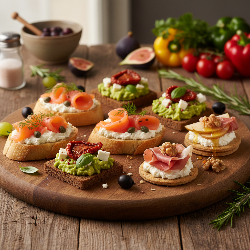 - Estetinis patrauklumas: Maži sumuštinukai, papuošti šviežiomis žolelėmis, uogomis ar sėklomis, atrodo tarsi maži meno kūriniai. Jie akimirksniu papuošia stalą ir sukuria šventinę nuotaiką.