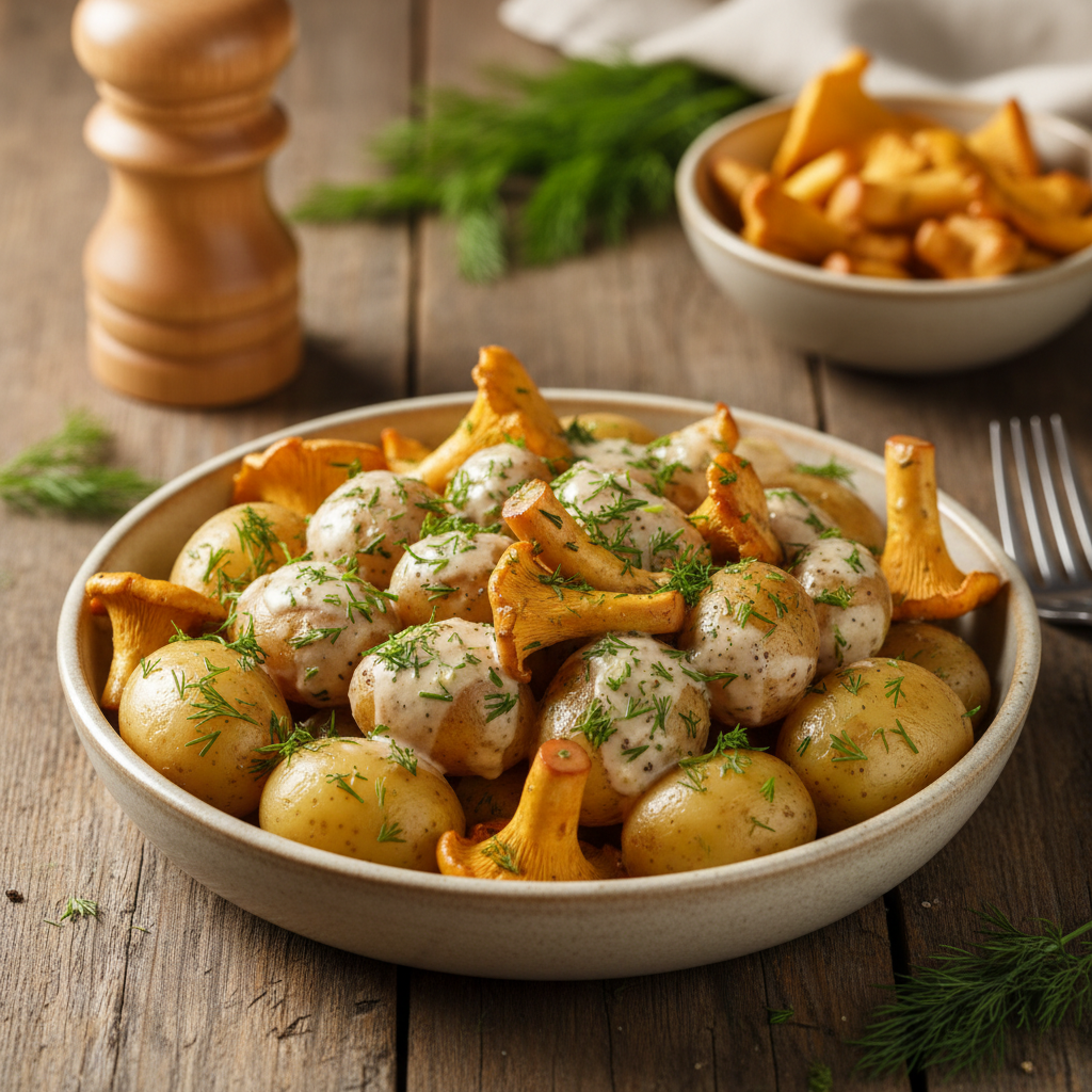 Mėgstantiems intensyvesnius skonius, rekomenduojama į patiekalą įtraukti šiek tiek rūkyto kumpio ar šoninės. Smulkiai pjaustytą šoninę reikėtų pakepinti prieš dedant svogūnus. Išsiskyrę dūmo skonio riebalai puikiai dera su miško grybų aromatu. Taip pat, jei norite daugiau tekstūrų, keptas bulves galite ne tik išvirti, bet ir trumpai apkepti orkaitėje su čiobreliais, kol jų išorė taps traški, o vidus liks purus. Toks kontrastas tarp kreminio grybų padažo ir traškių bulvių pakels šį derinį į visiškai naują lygį.